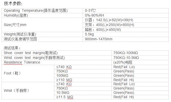 单脚人体综合测试仪是为测量人体综合电阻(包括人体、手腕带和鞋等的电阻)而设计的用直观发光二极管显示的装置。本仪器能对人体综合电阻大于109Ω 和小于105Ω时,进行检测与报警,JH1501A单脚人体综合测试仪配制了750KΩ-10MΩ电路(用于测试手腕带)和750KΩ-100MΩ电路(用于测试鞋),此仪器是测试手腕带和鞋的理想选择。