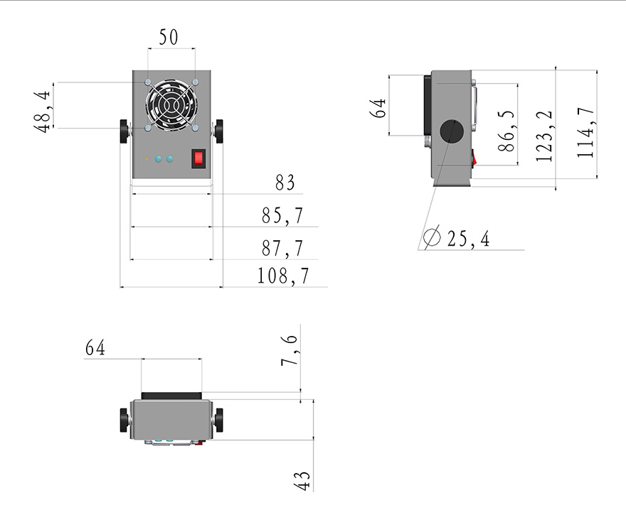 Q1201B直流微型离子风机,可提供平衡离子气流的、宽范围集中区域的离子消除器。离子平衡电压连续可调,并没有反馈控制电路。可使平衡电压稳定在很低的位置,可消除或中和宽范围集中目标或不易接触区域的静电荷。是精密电子产品、电子组装、医药制造组装线、印刷、包装和细小产品或成型的理想静电消除器。