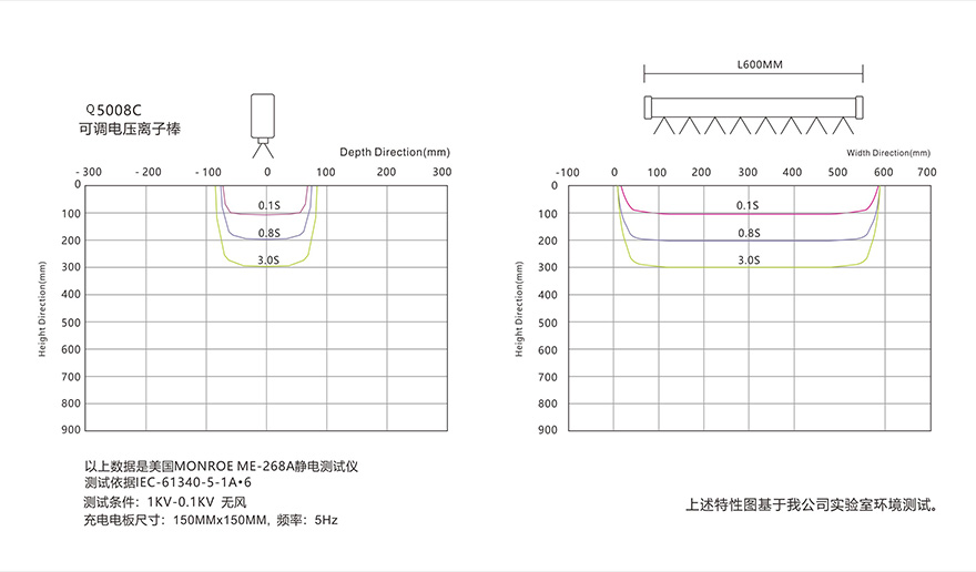 Q5008C\D第6代可调电压闪除静电离子棒可产生大量的正负电荷,可以将经过它离子辐射区内的静电中和掉。当物体表面所带电荷为负电荷时,它会吸引辐射区中的正电荷,当物体表面所带电荷为正电荷时,它会吸引辐射区中的负电荷,从而使物体表面上的静电被中和,达到消除静电的目的,由于静电易吸附灰尘,除静电后产品表面不易吸附灰尘。