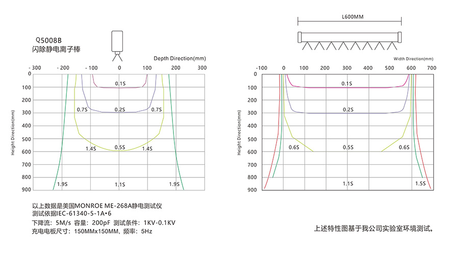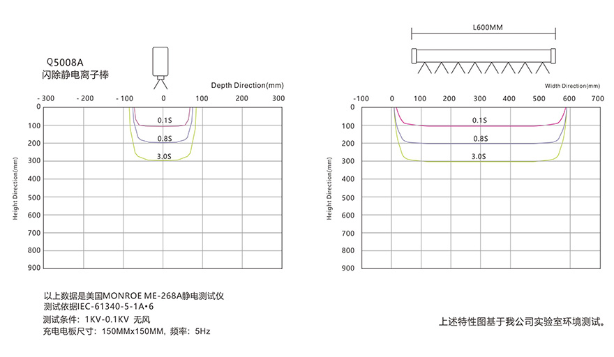 Q5008A\B第5代机械与智能型离子棒可产生大量的正负电荷,可以将经过它离子辐射区内的静电中和掉。当物体表面所带电荷为负电荷时,它会吸引辐射区中的正电荷,当物体表面所带电荷为正电荷时,它会吸引辐射区中的负电荷,从而使物体表面上的静电被中和,达到消除静电的目的,由于静电易吸附灰尘,除静电后产品表面不易吸附灰尘。