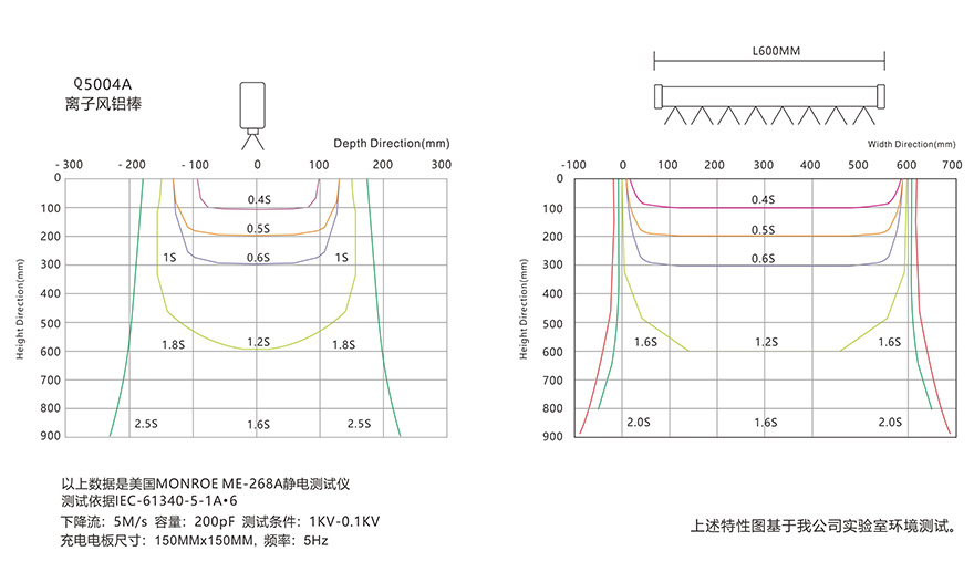 *静电消除时间符合ESD标准,静电消除时间是从测试电压为5000v~500v测得。