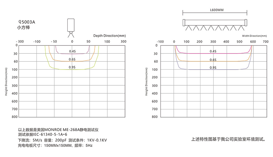 *静电消除时间符合ESD标准,静电消除时间是从测试电压为5000v~500v测得。
