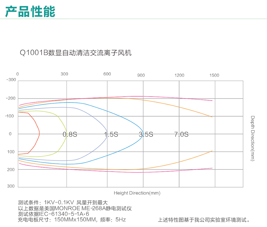 *单头交流离子风机的离子平衡电压和静电消除时间符合ESD标准,静电消除时间是从测试电压为1000v~100v测得。