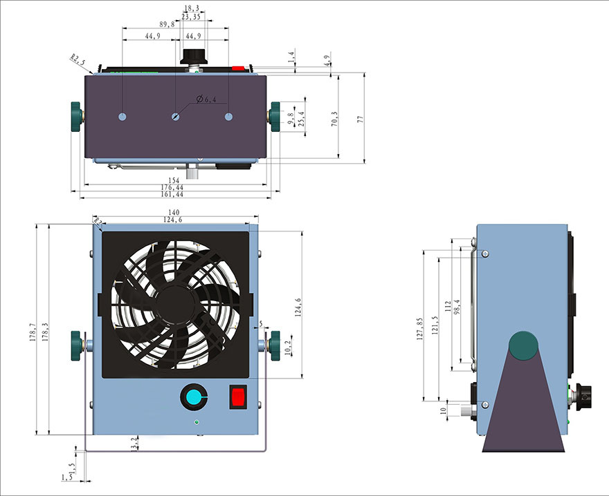 Q1001A单头交流离子风机是台式系列中最简单的一款,性价比较高一款,能提供一个操作人员所用工作面的整体中和静电效果。风力较小,除静电速度一般的一种。便携式设计,可180度调整,离子平衡很稳定,后网可加过滤网。